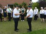 Die Vereinsmitglieder trafen sich in Uniform und mit Vereinsfahne um 16:45 Uhr am Waldhotel Hilgemann. Begleitet vom Musikverein Lienen marschierten die Schützenbrüder und –schwestern zur Binnheide, um dort die Schützenscheibe für das amtierende Königspaar Julian Hoge und Sarah Telljohann anzubringen. Der Abend klang schließlich mit einem geselligen Beisammensein aus. - - - - - Teilnahme Jubiläum 75 Jahre SV Meckelwege am 02.08.2025 Am Samstag, den 02. August, nahmen die Ringeler Schützinnen und Schützen an den Feierlichkeiten zum 75-jährigen Bestehen des Schützenvereins Lienen-Meckelwege teil.