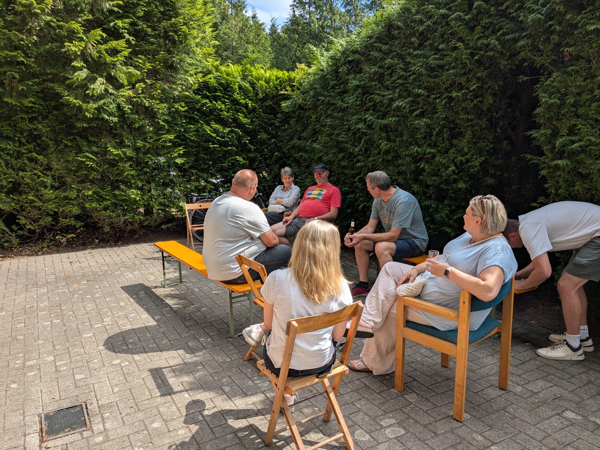 Am Zwischenziel auf dem Hof Hinke trafen schließlich beide Gruppen zusammen und konnten sich mit kühlen Getränken für die nächste Etappe stärken.