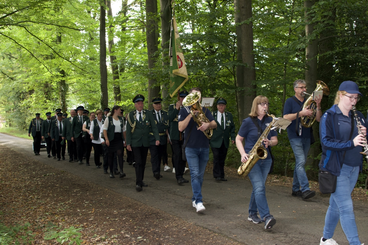 Antreten am Waldhotel Hilgemann mit Begleitung durch den Musikverein Lienen