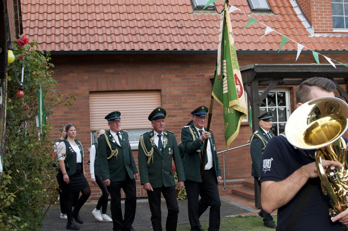 Die Mitglieder trafen sich für den Festumzug in Uniform und mit Fahne um 17:00 Uhr auf dem Hof Schmitte.