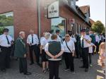 Die Vereinsmitglieder trafen sich in Uniform und mit Vereinsfahne um 16:45 Uhr am Waldhotel Hilgemann. Begleitet vom Musikverein Lienen marschierten die Schützenbrüder und –schwestern zur Binnheide, um dort die Schützenscheibe für das amtierende Königspaar Julian Hoge und Sarah Telljohann anzubringen. Der Abend klang schließlich mit einem geselligen Beisammensein aus. - - - - - Teilnahme Jubiläum 75 Jahre SV Meckelwege am 02.08.2025 Am Samstag, den 02. August, nahmen die Ringeler Schützinnen und Schützen an den Feierlichkeiten zum 75-jährigen Bestehen des Schützenvereins Lienen-Meckelwege teil.