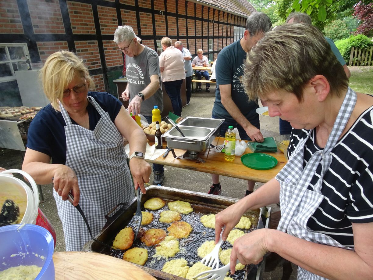 Am Ziel bei Familie Oslage angekommen, sorgten dann schließlich Reibekuchen mit Apfelmus und Grillwürstchen für die notwendige Stärkung.