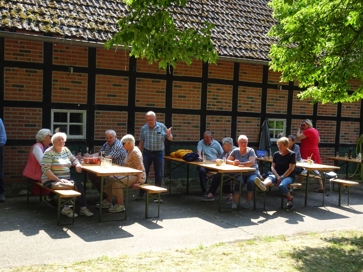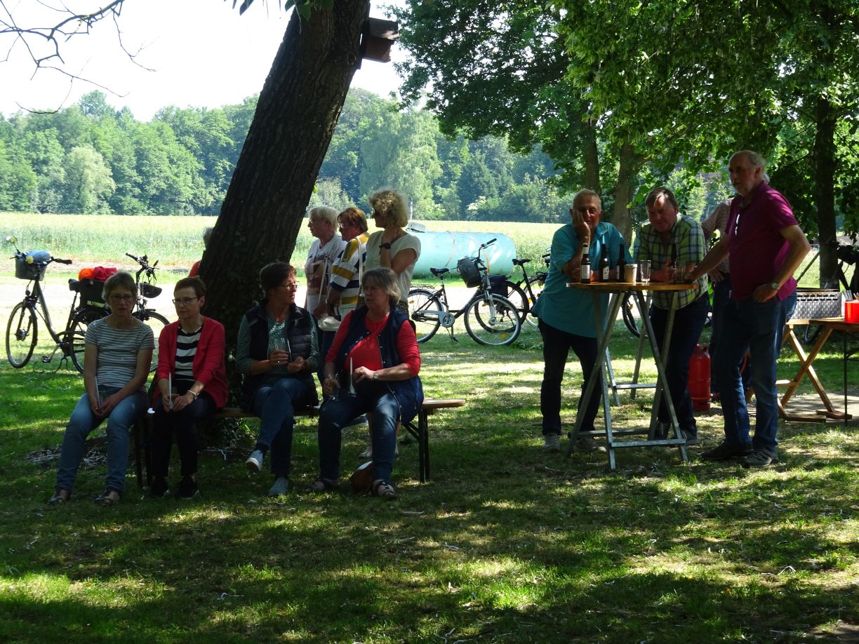 Beide Radfahrgruppen machten sich bei herrlichem Wetter auf den Weg zum Zwischenziel bei Familie Lutterbey. Bei kühlen Getränken konnte man sich dort von den Strapazen der ersten Etappe erholen.