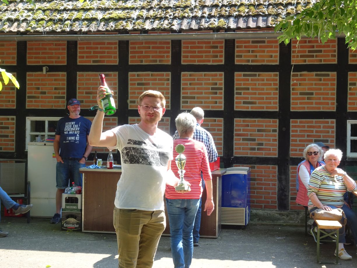 Anschließend traten beide Teams in weiteren Wettkämpfen gegeneinander an, die schließlich die Gruppe Hilgemann für sich entscheiden und den Pokal in Empfang nehmen konnte.