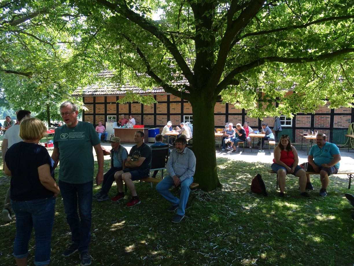 Beide Radfahrgruppen machten sich bei herrlichem Wetter auf den Weg zum Zwischenziel bei Familie Lutterbey. Bei kühlen Getränken konnte man sich dort von den Strapazen der ersten Etappe erholen.