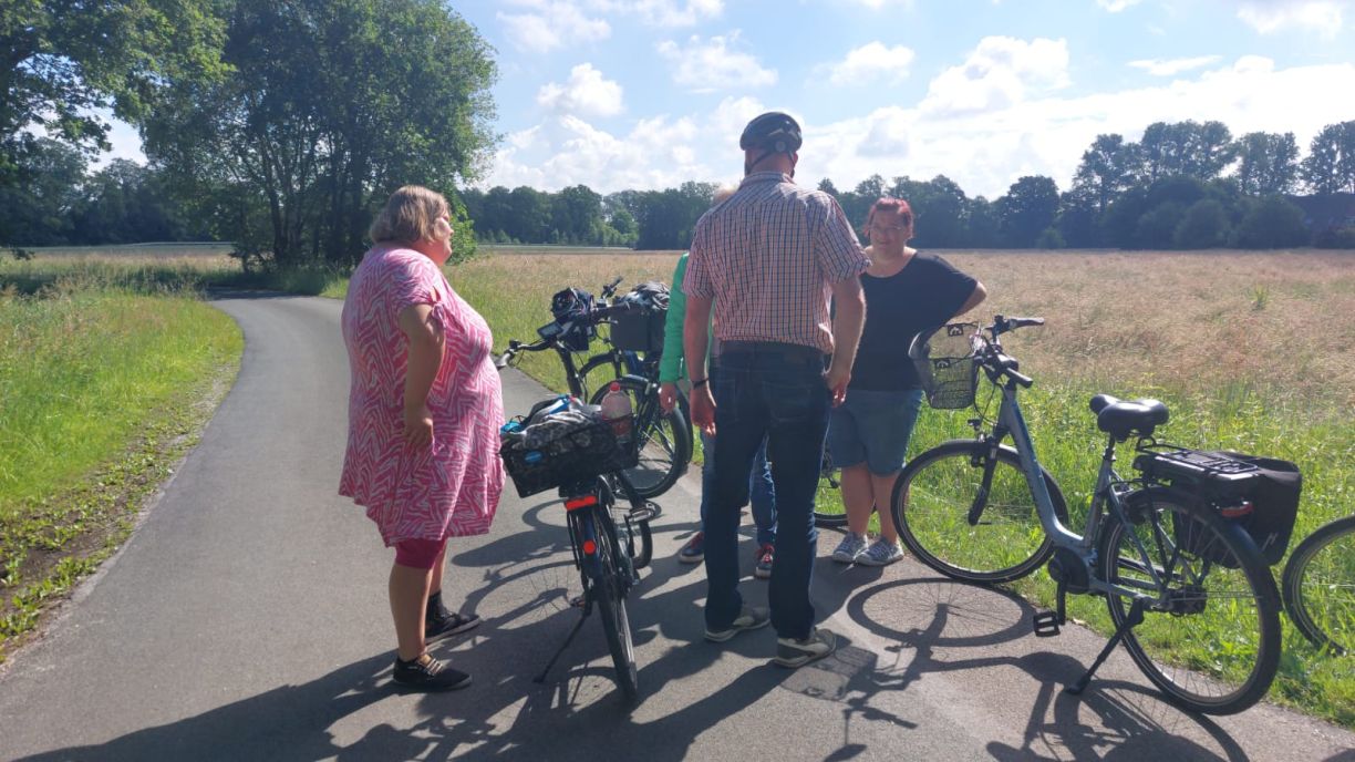 Während der Wanderung durch die Bauernschaft wurde eine Pause am Kuhdamm eingelegt.